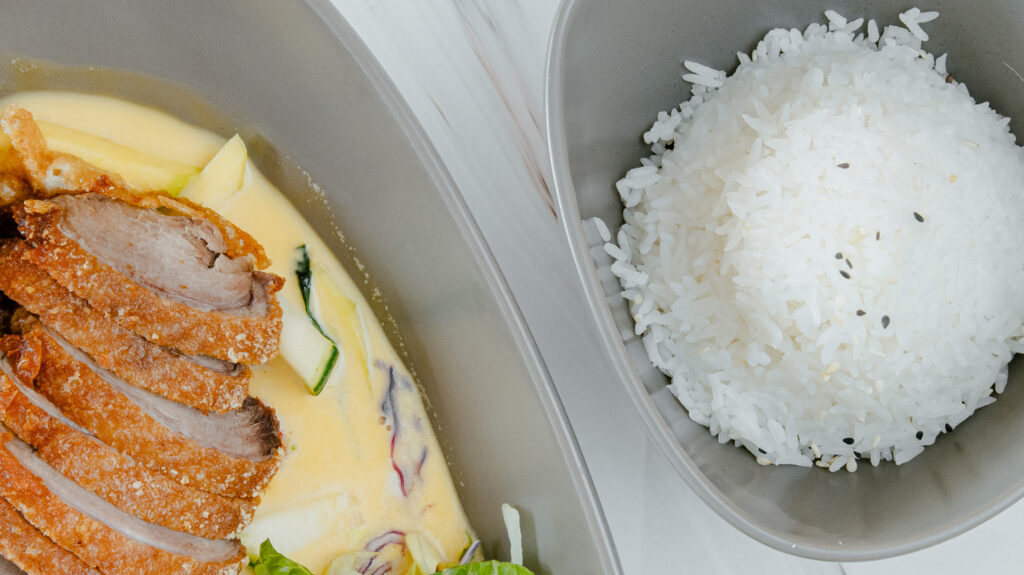 Knuspriges Entenbrustfilet mit frischer Mango in Mango-Kokos-Sauce